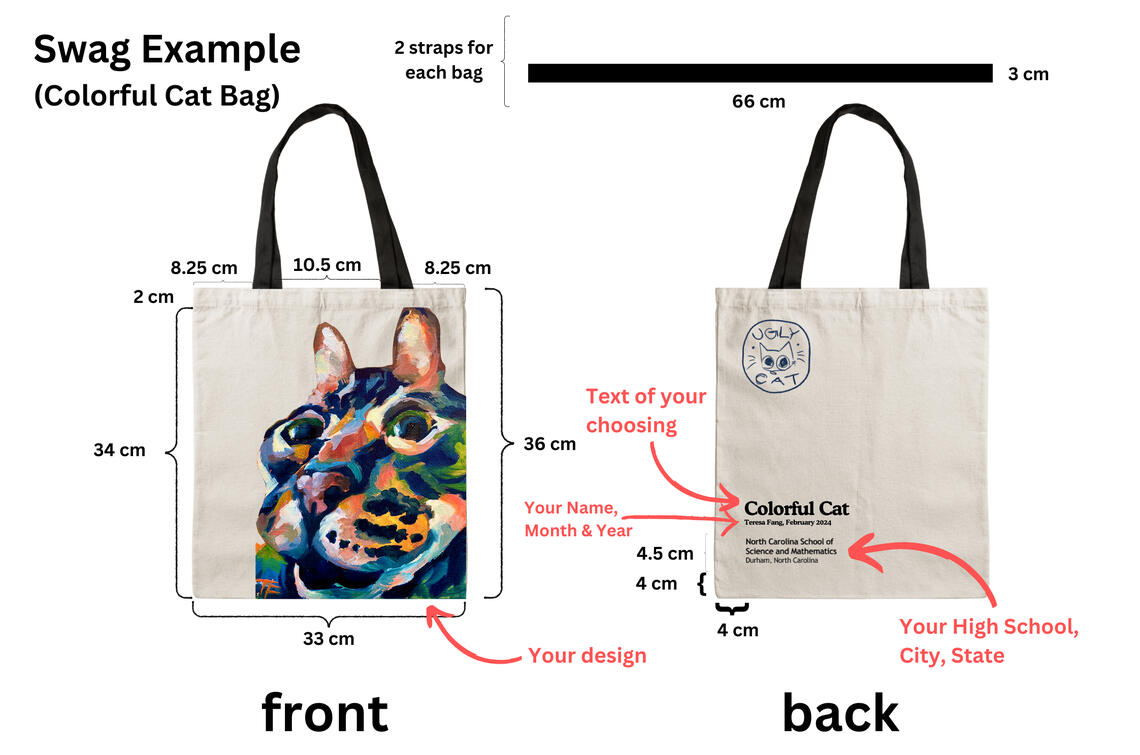 Printing designs at an easy and cheap price.Ugly Cat can print swag including but not limited to tote bags, t-shirts, sweatshirts, stickers, and hats.For example: We print 100% cotton, high-quality canvas, full-color tote bags!We are looking at you, NCSSM hall shirts and sweatshirts, club/event shirts, party goody-bags, etc.